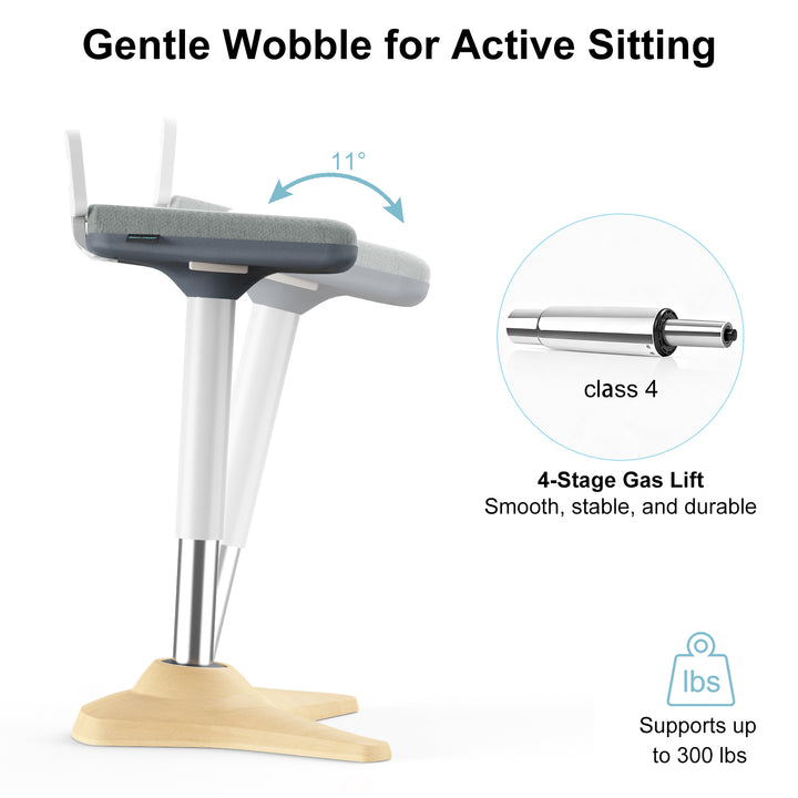 <p>The 8° tilt feature provides the freedom to rock, tilt, and shift, encouraging movement that can improve circulation, reduce fatigue, and promote a healthier work environment. Built with durability in mind, this wobble chair is designed to support up to 300 lbs and features a TPR non-slip base that ensures stability on most surfaces.</p>