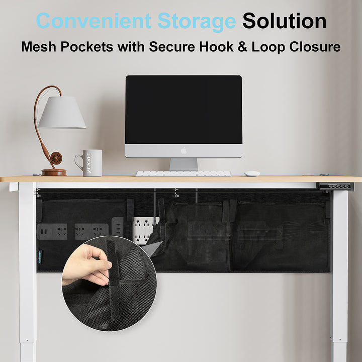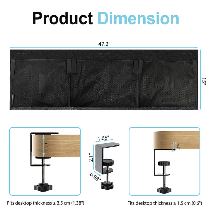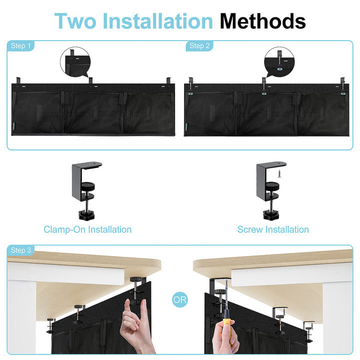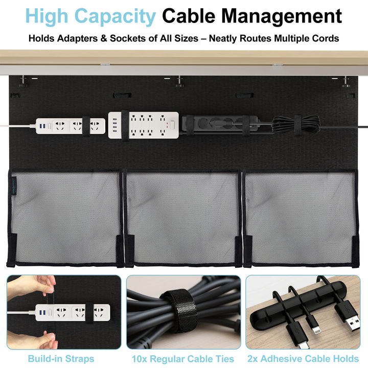 <p>Transform your workspace with this dual-purpose under desk privacy panel and cable organizer. Designed for both functionality and style, it provides discreet leg coverage while keeping your power strips, chargers, and cables neatly stored and out of sight. The integrated mesh pocket helps organize multiple cords and adapters, while built-in hook-and-loop straps keep everything securely in place—no more tangled cables or floor clutter.</p>