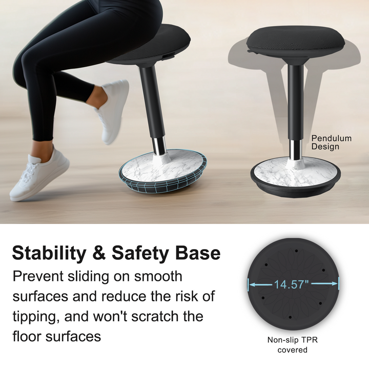 <p>Built for both style and performance, the stool's matte marble-textured base adds a modern touch, while the TPR anti-slip bottom and non-slip gas lift provide excellent grip and stability—even on tile or hardwood floors. No wobbling, no sliding—just safe, active sitting. The stool supports up to 300 lbs with a heavy-duty frame that’s made to last.</p>