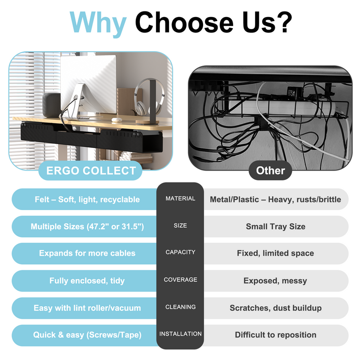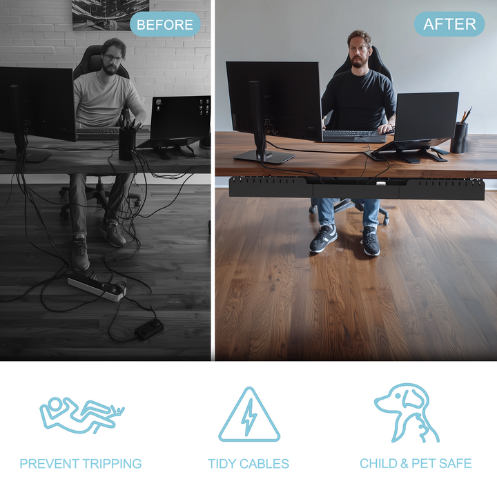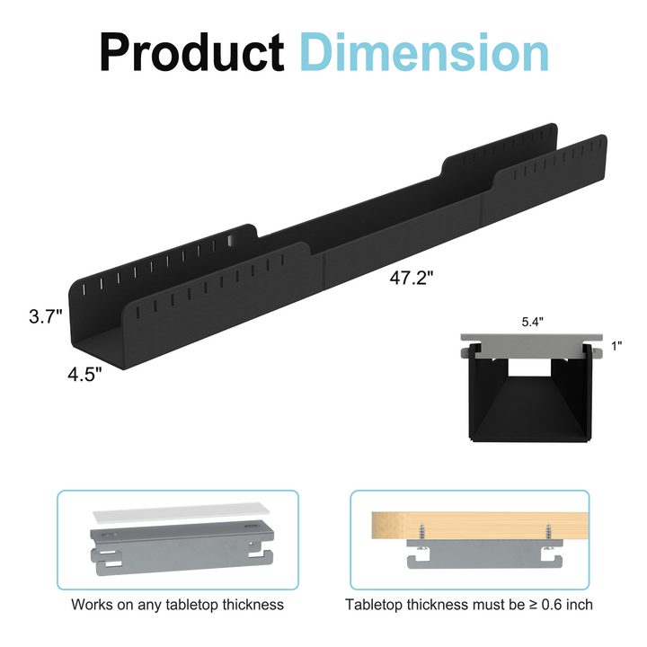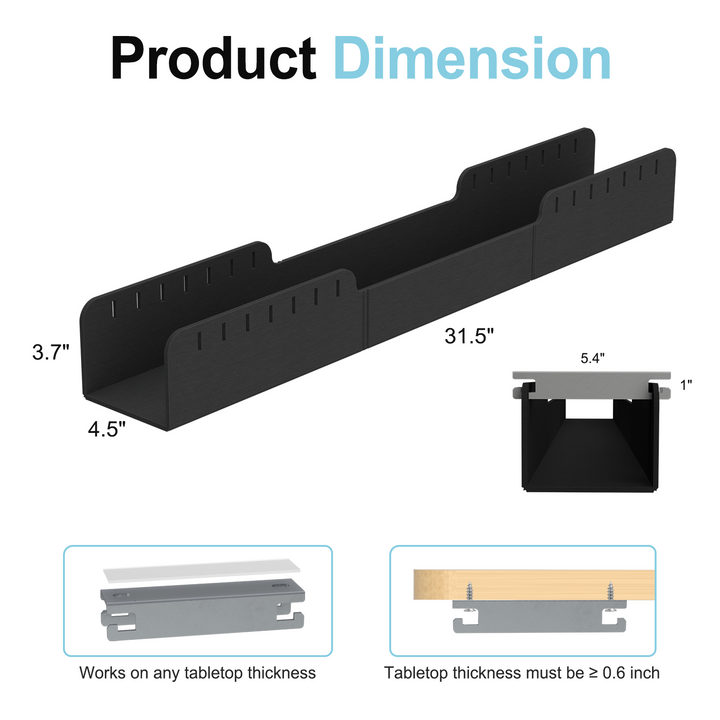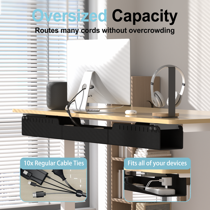 <p>Upgrade your workspace today with our hook-mounted under-desk cable management tray and enjoy a cleaner, more efficient setup!</p>