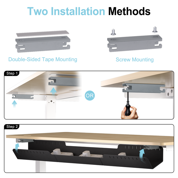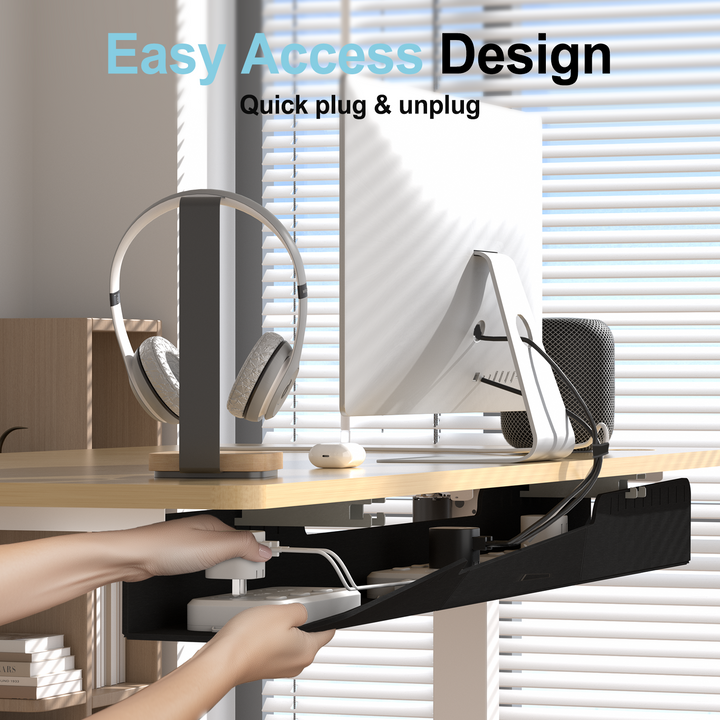 <p>Messy cables can be frustrating and make your workspace look unorganized. Our Under Desk Cable Management Tray is designed to store and conceal power strips, adapters, and wires neatly—without sacrificing easy access when needed.</p>