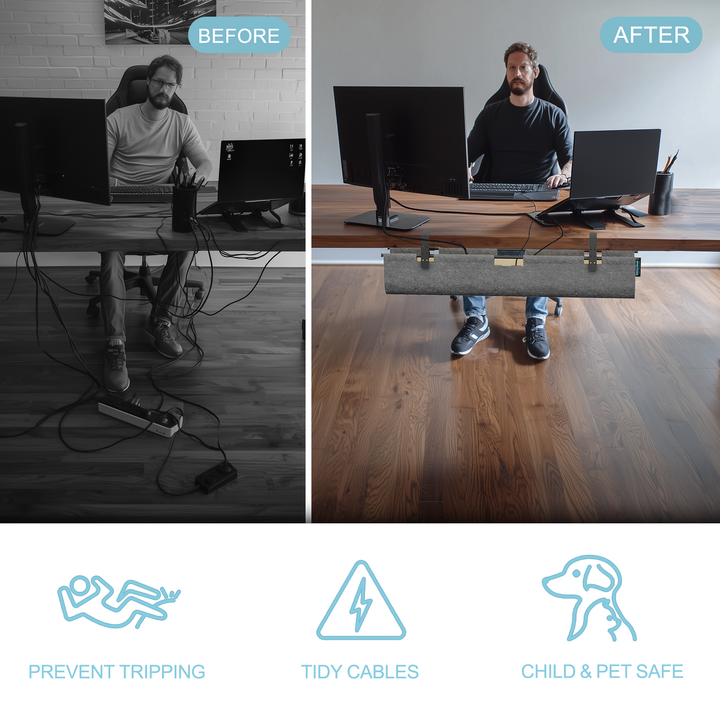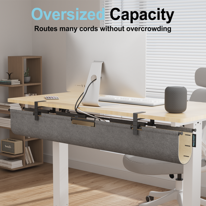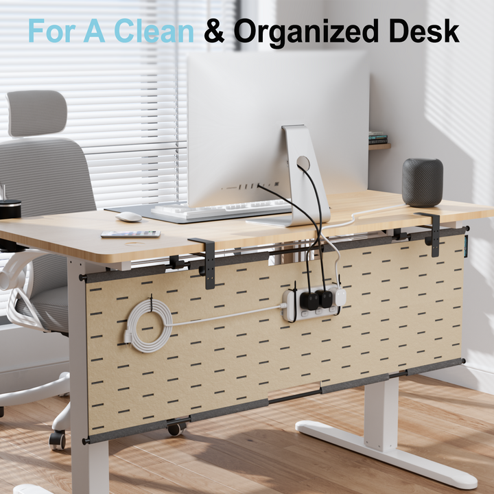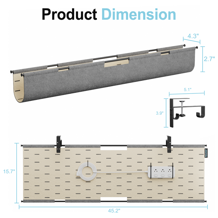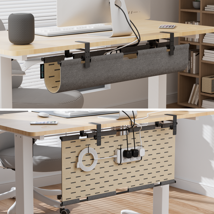 <p>The desk cable organizer includes sturdy metal rods on both sides—use one side only to drop the felt channel as a under desk privacy panel, or mount both sides for maximum storage. Whether you need to store cables, chargers, or small accessories, this cable management box is the perfect solution.</p>